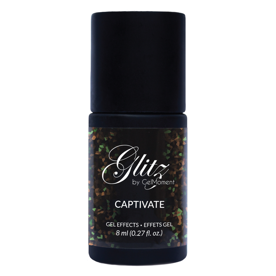 This multi-faceted Glitz Gel Effects Top Coat is like adding a bit of sparkly confetti to any manicure! Clear with random specks of glittery color, one thin coat of Captivate adds a special effect to any GelMoment Polish that can't be ignored.